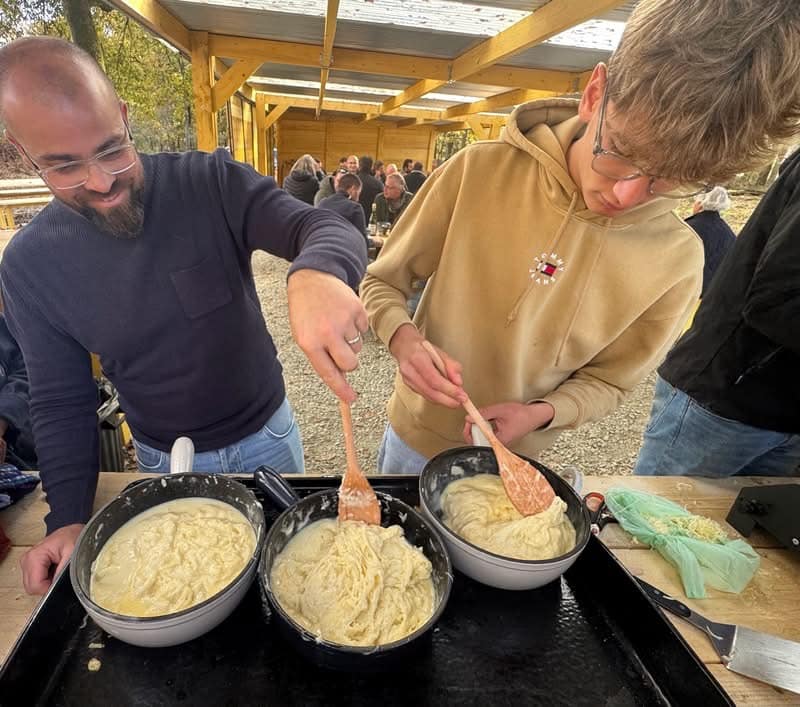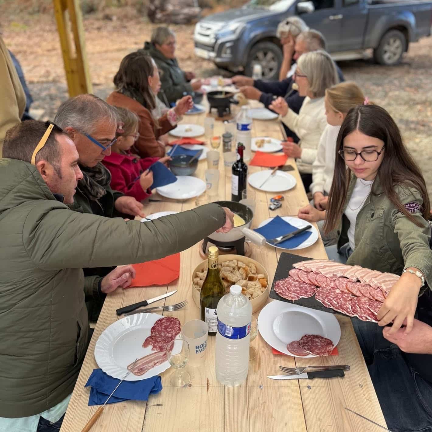 Au programme : Repas savoyard dans une de nos cabanes au milieu des bois, réchauffée par notre poêle à bois. Nous poursuivrons ensuite la journée avec nos activités couvertes au cœur de la forêt de la Boissière : ball-trap, lancer de haches et tir à l’arc. Le tout accompagné de braseros et de vin chaud pour réchauffer l’atmosphère.